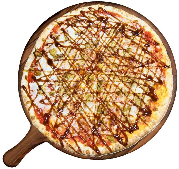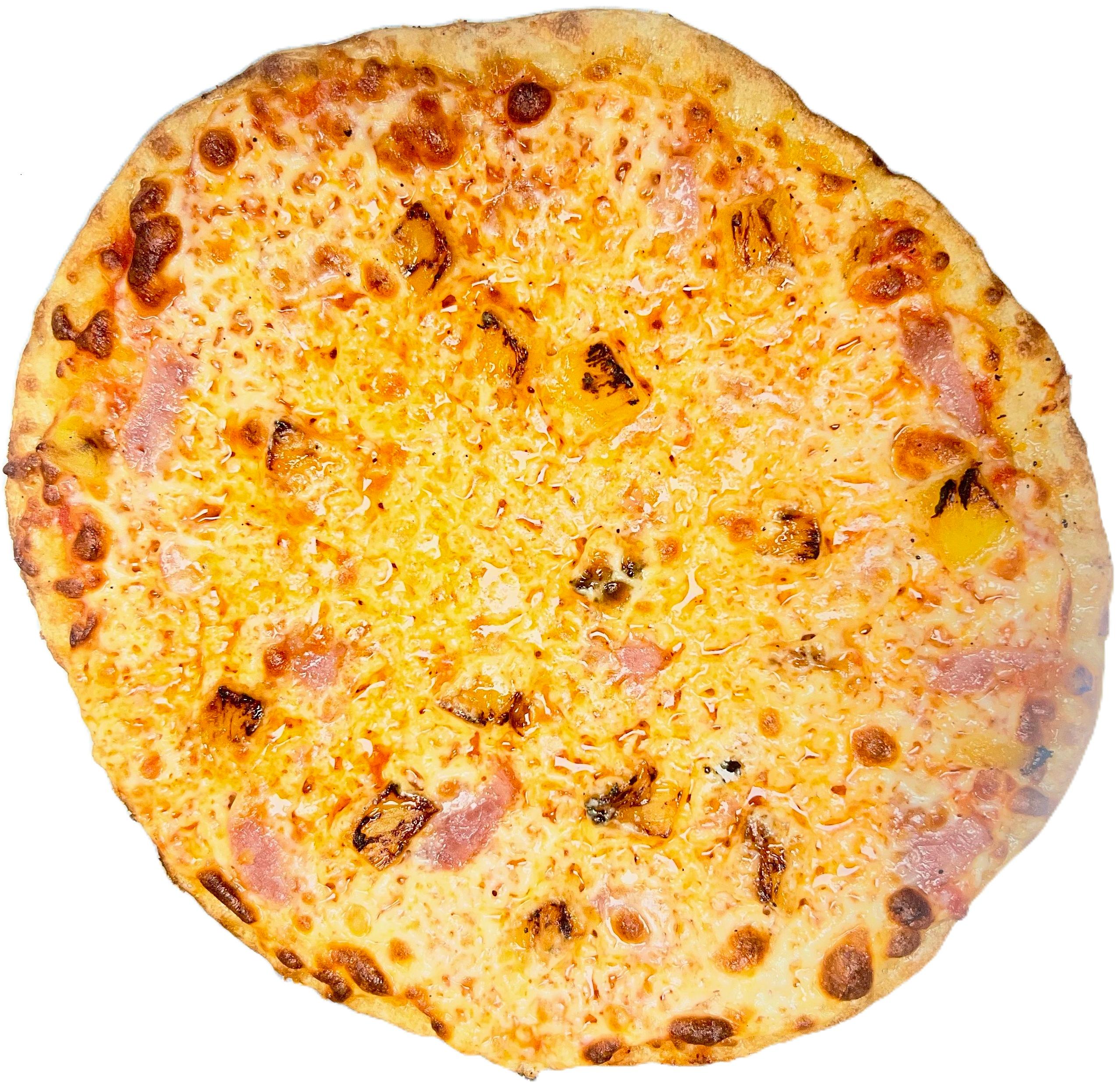 A sweet-savory classic topped with smoky turkey bacon, juicy pineapple chunks, and a rich blend of New York–style mozzarella cheeses, baked to golden perfection