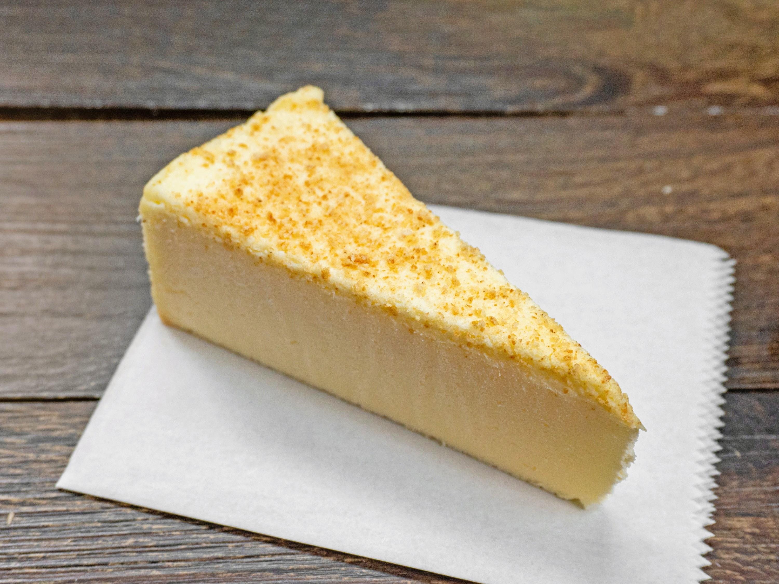 Creamy dense cheesecake slice with a rich, crumbly graham cracker crust