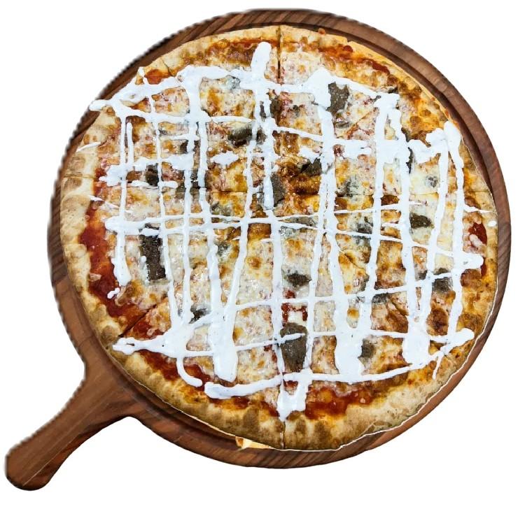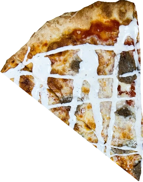 Savory Gyro meat, with a rich blend of New York mozzarella cheeses, all drizzled with a creamy white sauce drizzle