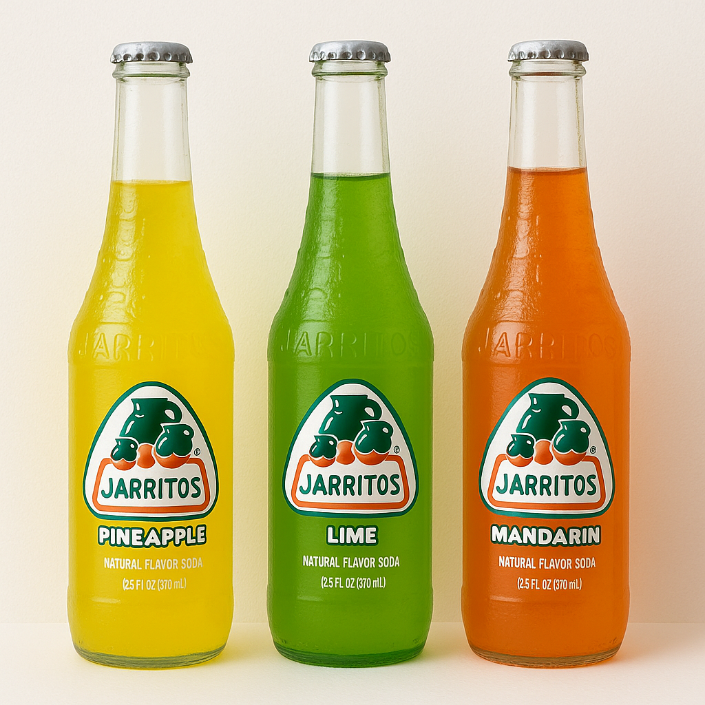 A fruity mexican soda available in various flavors like pineapple, lime & mandarin
